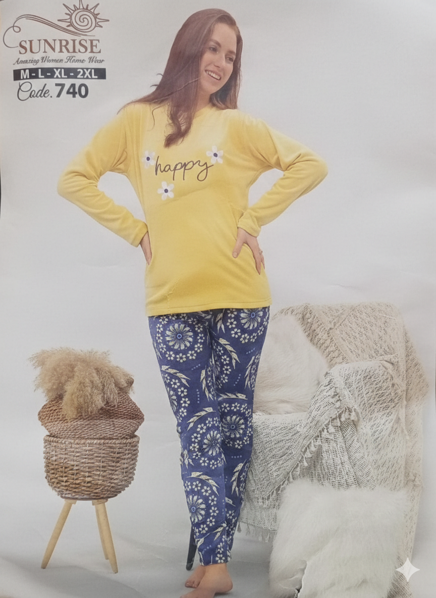 بيجامة صن رايز قطيفة منقوشة ورد 740