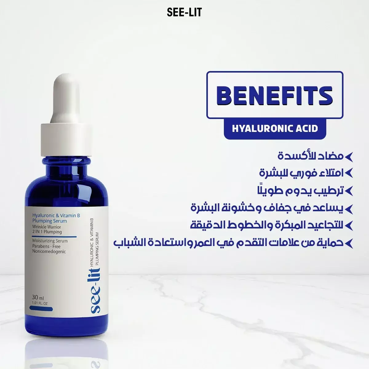 ترطيب مكثف: يجذب حمض الهيالورونيك الرطوبة إلى البشرة، مما يوفر ترطيبًا عميقًا يدوم طويلًا لإطلالة نضرة وندية.