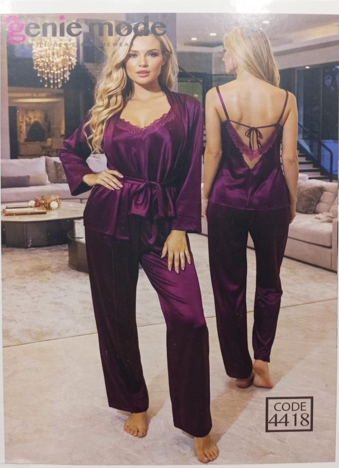 بيجامة جني موود ستان 3 قطع روب قصير + توب دانتيل