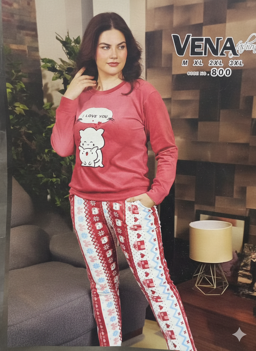 بيجامة بنطلون فينا قطيفة جيب قطة علي الصدر 800