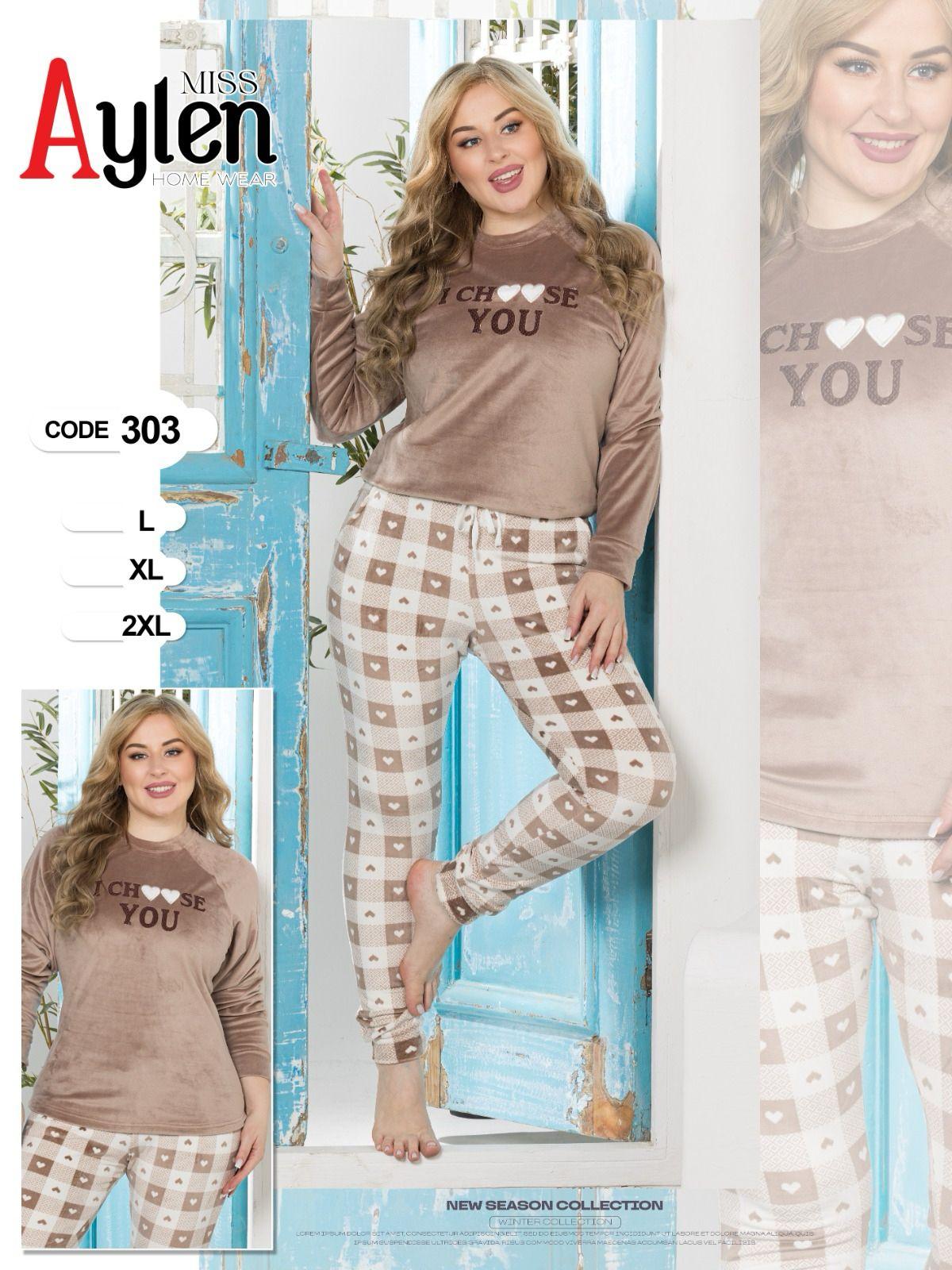بيجامة مس الين قطيفة بنطلون قلوب 303