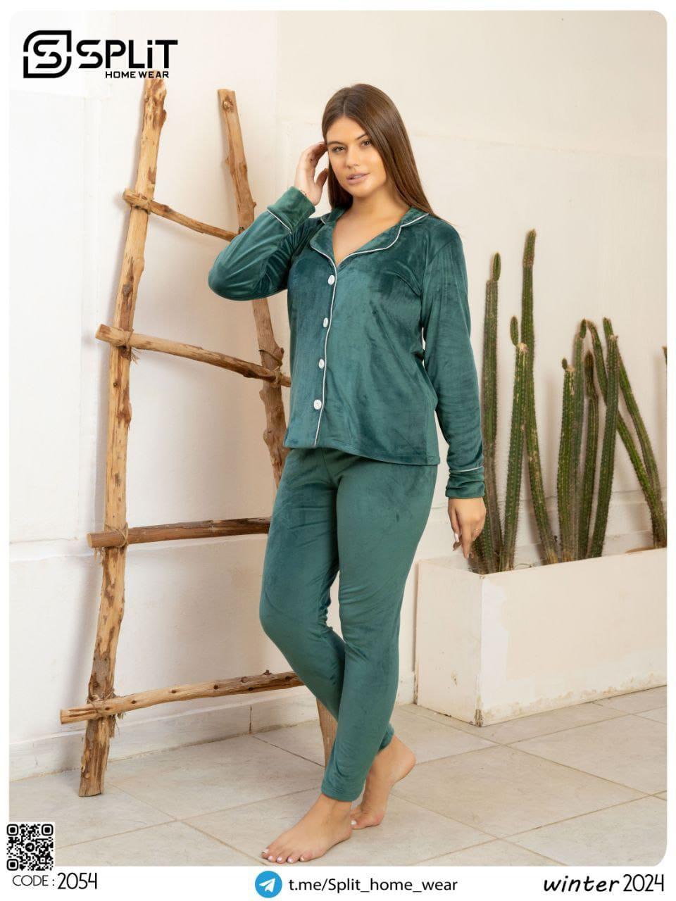 بيجامة سبلت قطيفة بزراير سادة 2054