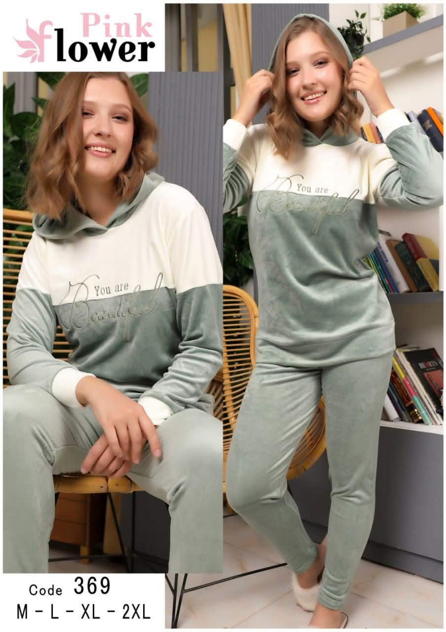 بيجامه بينك فلاور قطيفه نصين كتابه ع الصدر كابتشو 369